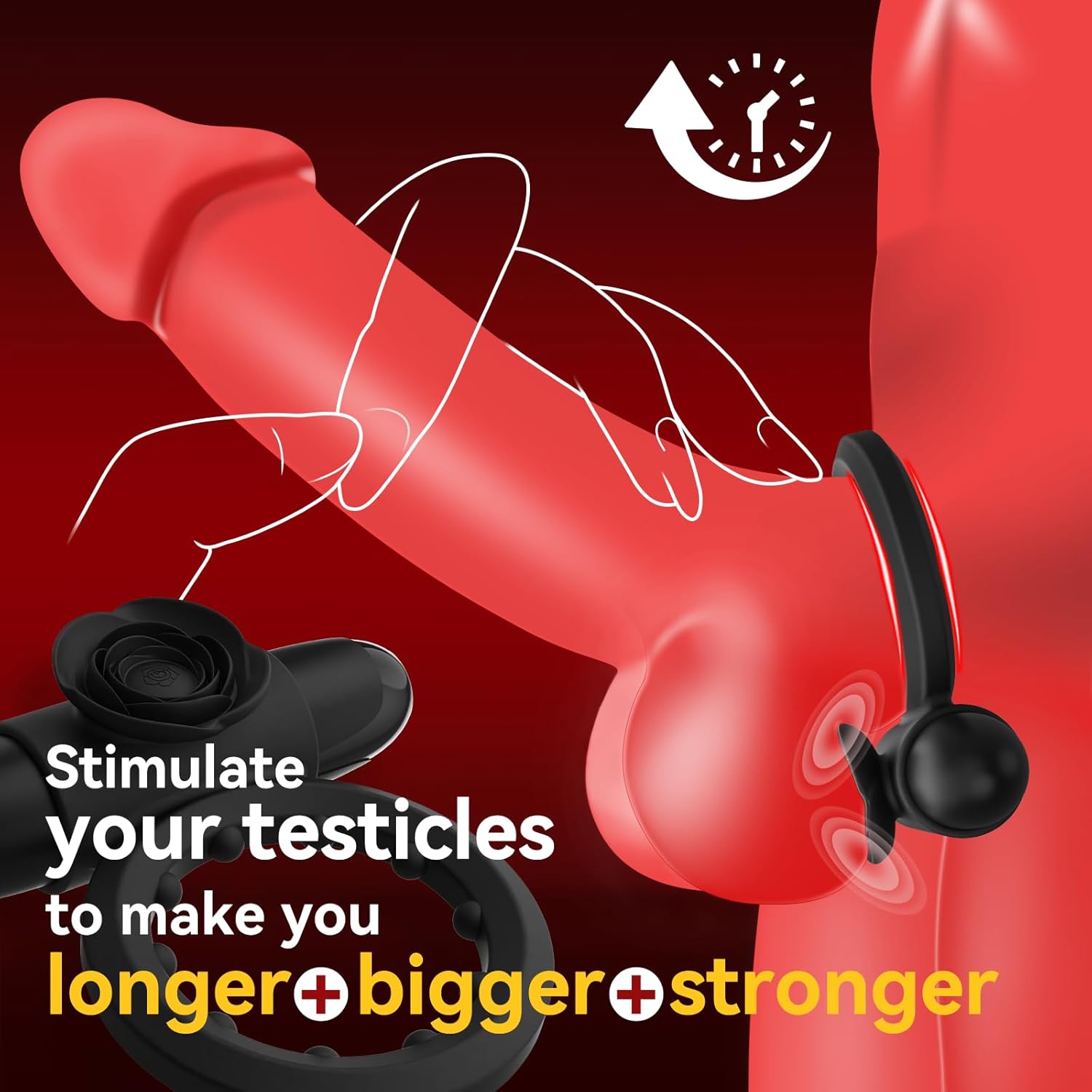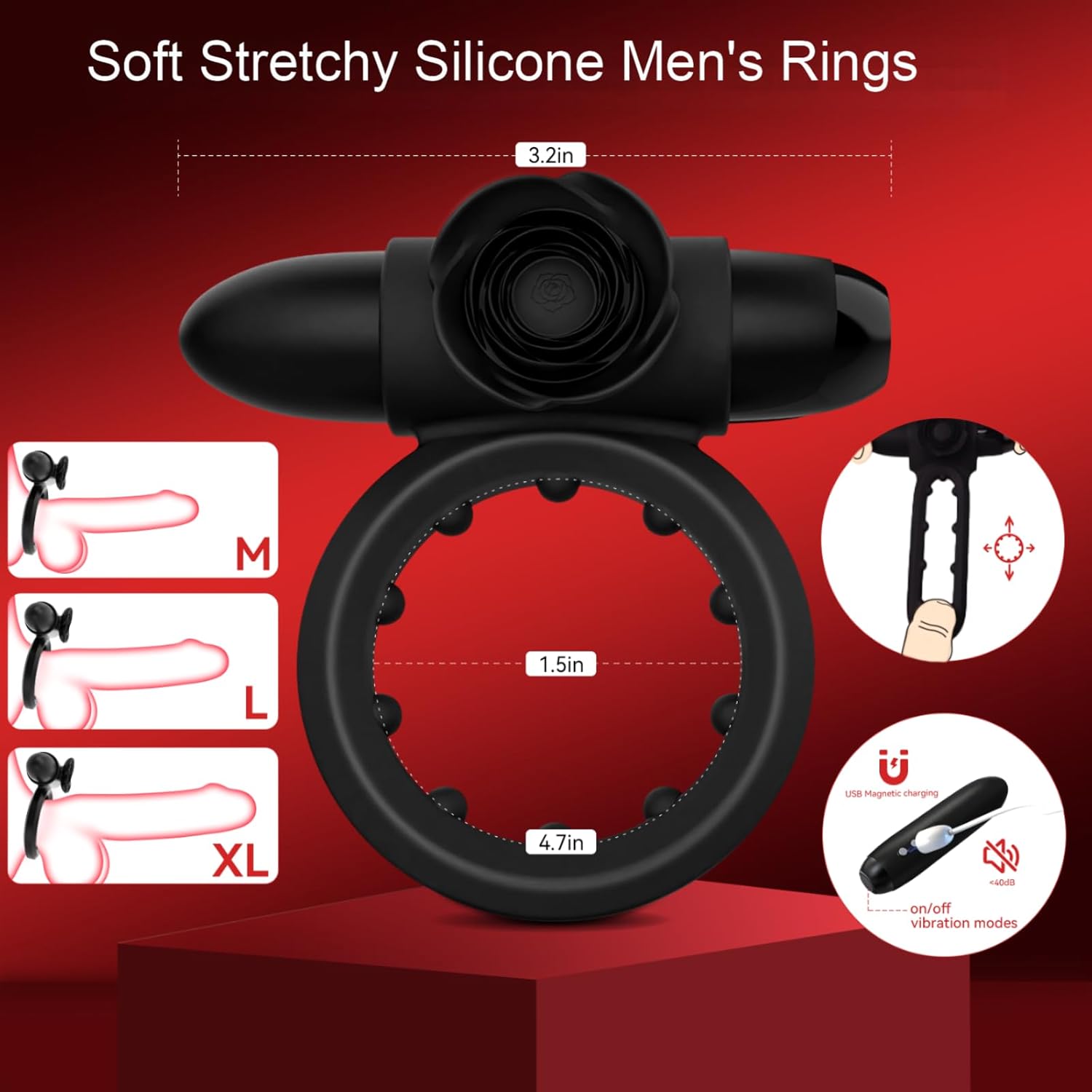Vibrating Cock Ring with Bullet Vibrator for Men, Mikilnqilo Adult Sex Toys Penis Ring Vibrator for Penis Testicles Clitoris Stimulation, Rose Clitoral Stimulator for Couples Sex Toy, Black