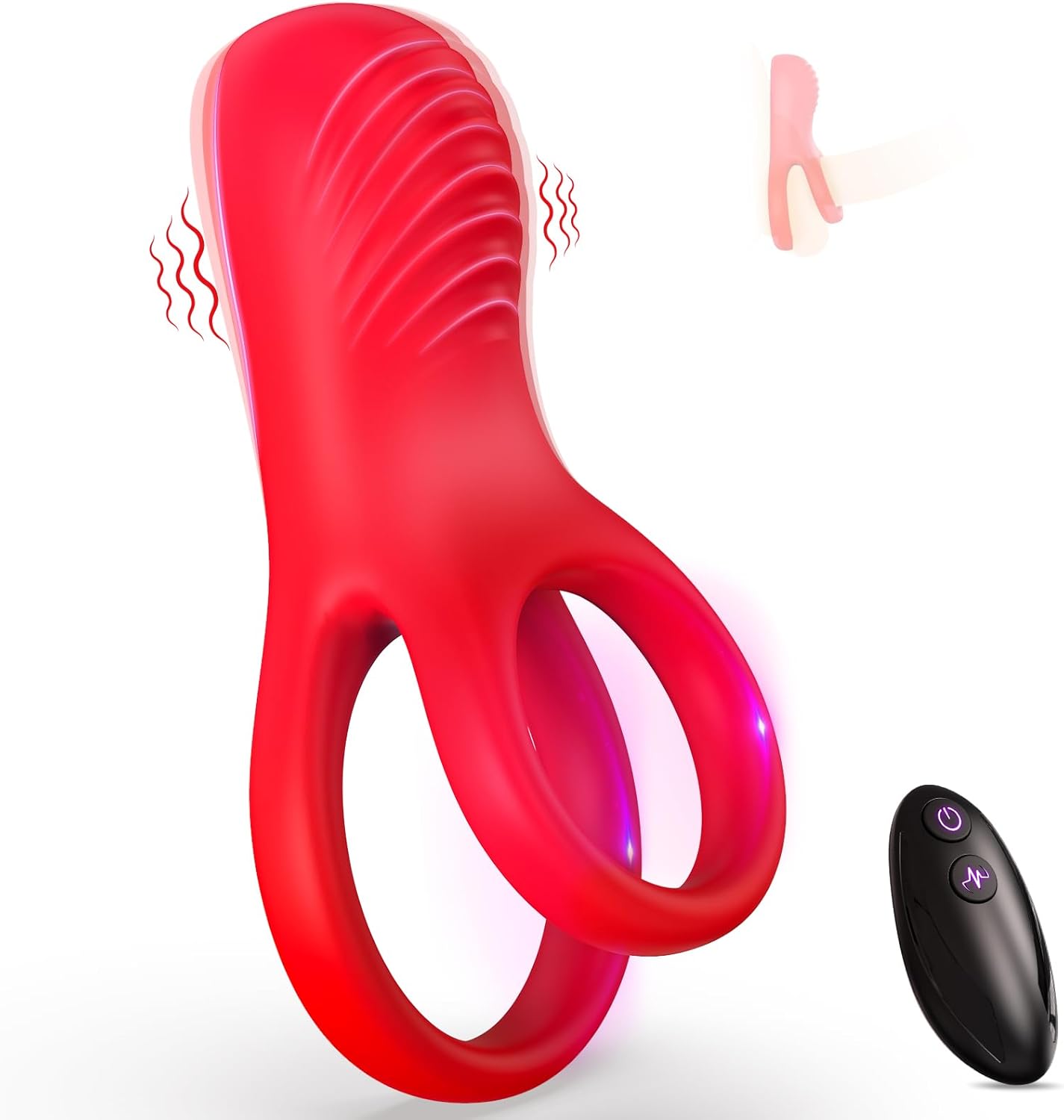 Vibrating Cock Ring with Clitoral Stimulator, Silicone Penis Ring Vibrator with 9 Vibration Modes, Rechargeable Adult Sex Toys & Games, Clit Vibrators for Men, Women, Couples, Black